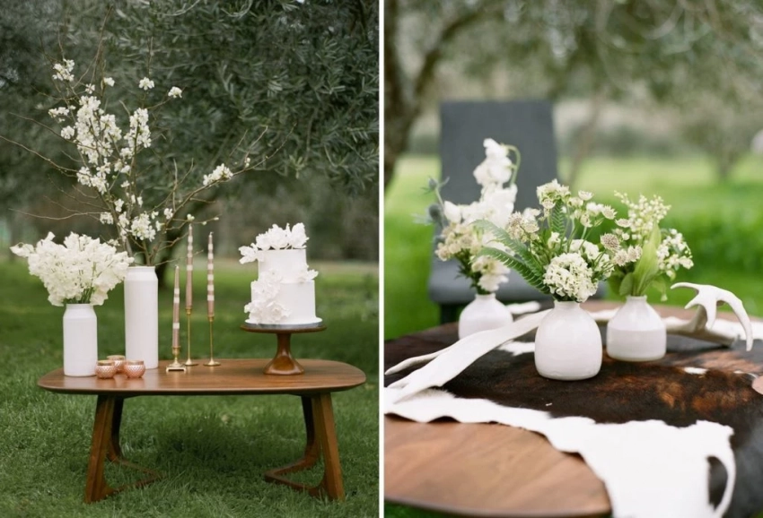 Вы можете украсить свою церемонию в бохо стиле, используя различные элементы. Все в благородных тонах бежа, розоватого золота, пастельных оттенков, а также текстурированными белыми поверхностями. Хорошим выбором будут декоративные элементы в белом цвете: деревянные застолные места, столовое серебро, стеклянные стаканы и декоративные предметы, такие как свечи и лепестки роз.