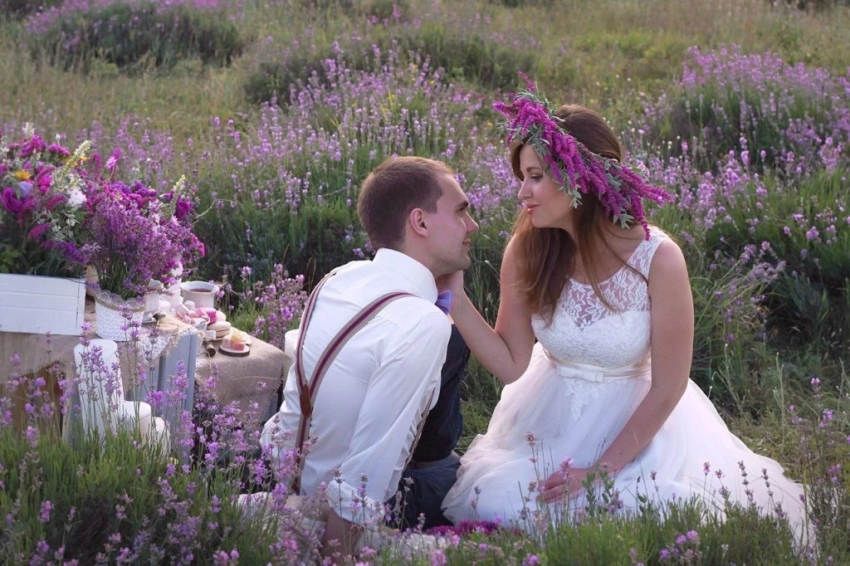 При планировании церемонии следует ориентироваться на нежные пудровые оттенки, как будто выжженные солнцем: кремовый, голубой, светло-розовый, фиолетовый, сиреневый. Это действительно «фирменные» цвета лавандовых полей — визитная карточка Франции! Почему бы не использовать в дизайне саму лаванду? Она станет отличным выбором для декора вашей свадьбы.
